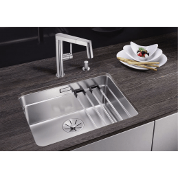 Blanco Etagon 500-U ist ein elegantes und funktionales Küchenspülbecken aus Edelstahl in hochwertiger Seidenglanz-Ausführung. Die Unterbau-Montage (undermount) sorgt für eine saubere, minimalistische und luxuriöse Optik der Arbeitsfläche.