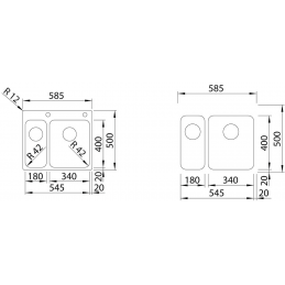 Hauptbecken: 340 × 400 mm, Tiefe 185 mm