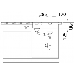 Die Spüle mit den Gesamtmaßen 585 × 500 mm ist für Unterschränke mit einer Breite ab 60 cm vorgesehen.