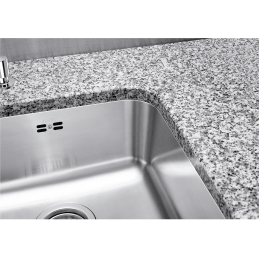 Da das Spülbecken keine Armaturenbank hat, wird die Armatur direkt in die Arbeitsplatte eingebaut. Diese Montageweise sorgt für ein noch klareres Design und eine einfachere Reinigung des Bereichs um die Spüle.