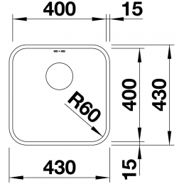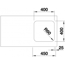 Das Becken mit den Maßen 400 × 400 mm und einer Tiefe von 175 mm (Radius R60) bietet ausreichend Platz für das tägliche Spülen.