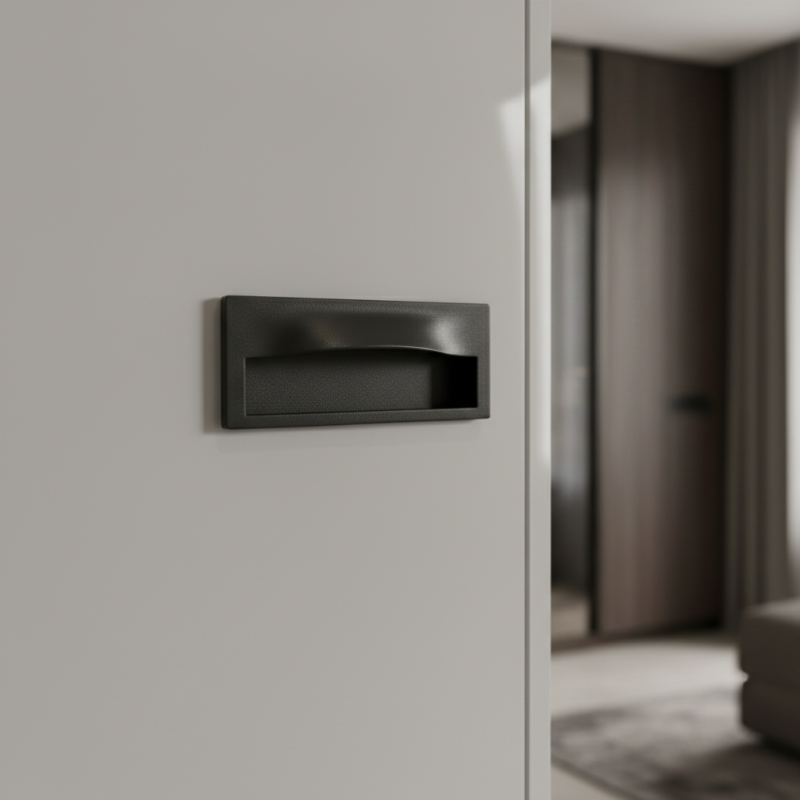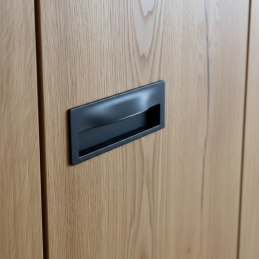 Moderne eingelassener Griff GALOS in eleganter Ausführung Graphit ist die ideale Lösung für Schiebetüren, Schubladen oder Möbeltüren, bei denen ein klares und minimalistisches Erscheinungsbild gewünscht wird. Dank der eingelassenen Ausführung ragt er nicht aus der Möbeloberfläche heraus und ist somit auch für enge Räume geeignet.