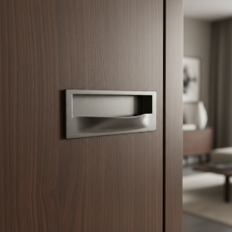 Moderne eingelassener Griff GALOS in eleganter Ausführung gebürstetes Nickel ist die ideale Lösung für Schiebetüren, Schubladen oder Möbeltüren, bei denen ein klares und minimalistisches Erscheinungsbild gewünscht wird. Dank der eingelassenen Ausführung ragt er nicht aus der Möbeloberfläche heraus und eignet sich somit auch für enge Räume.