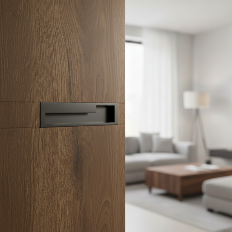 Der moderne Designgriff DIESEL in der Ausführung Anthrazit matt ist für das direkte Fräsen in die Möbeltür vorgesehen. Die eingelassene Lösung sorgt für ein sauberes, minimalistisches Erscheinungsbild ohne hervorstehende Elemente und gewährleistet gleichzeitig einen bequemen und ergonomischen Griff.