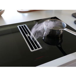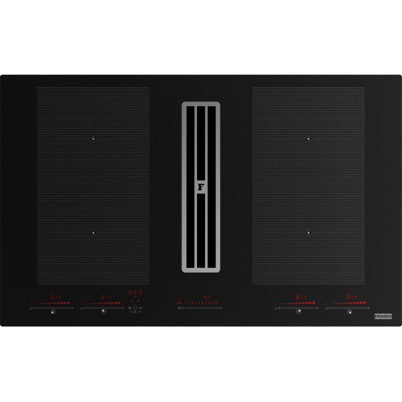 Das Induktionskochfeld Franke FMA 8391R HI aus elegantem schwarzem Glas bietet die perfekte Verbindung moderner Kochtechnologie und leistungsstarker Absaugung in einem kompakten Gerät.