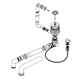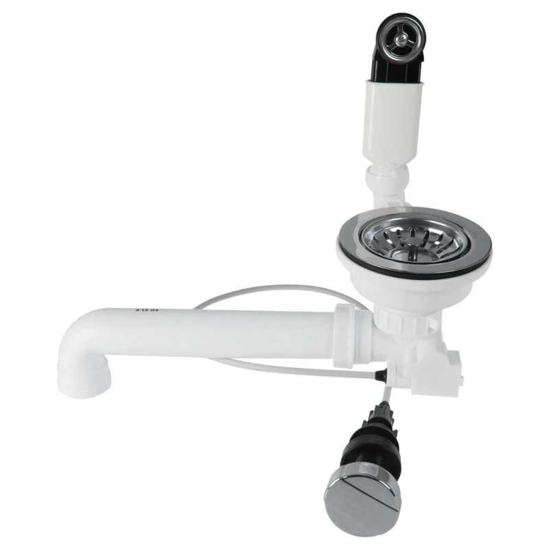 Exzentrische Ablaufsteuerung besteht aus einem Drehknopf und Seilzug, die es ermöglichen, den Siebkorbverschluss der Spüle aus der Ferne zu öffnen und zu schließen. Der Drehknopf ist am Rand der Spüle angebracht und durch einfaches Drehen können Sie das Wasser mit trockener Hand ablassen, ohne das Sieb manuell drücken oder herausziehen zu müssen.