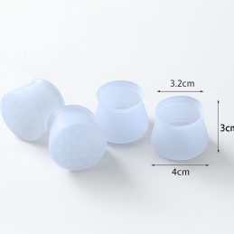 Die Schützer bestehen aus weichem und flexiblem Silikon, das sich leicht an die Form des Stuhlbeins anpasst. Die Unterseite ist mit weichem Filz versehen, der ein reibungsloses Bewegen des Stuhls ohne Beschädigung der Oberfläche ermöglicht. Die transparente, matte Oberfläche wirkt dezent und ästhetisch in jedem Interieur.