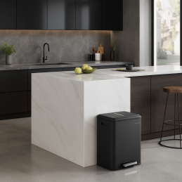 Der Mülleimer STING bietet eine elegante und effiziente Lösung für die Abfalltrennung direkt im Haushalt oder Büro. Dank zwei separater Fächer mit einem Volumen von 2×15 Litern haben Sie Kunststoff, Papier, Glas oder gemischten Abfall immer übersichtlich in einem Behälter getrennt – ohne die Notwendigkeit mehrerer Behälter.