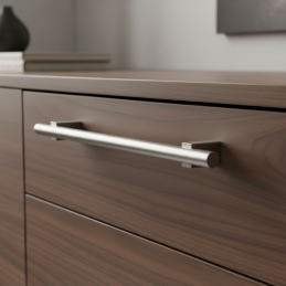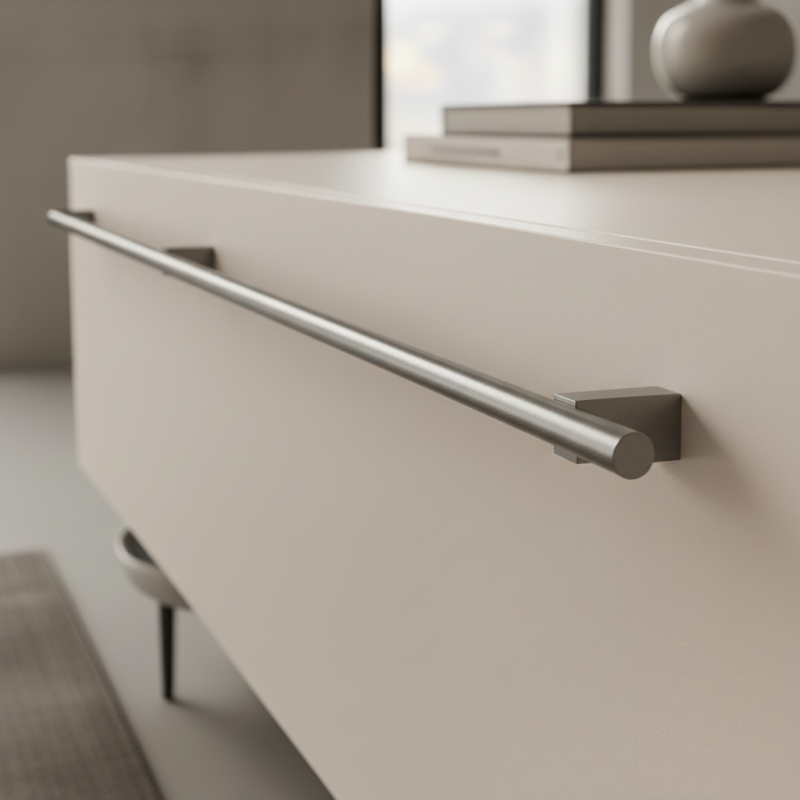Der Griff GUANA in der Ausführung mattes Chrom vereint einen eleganten Metall-Look mit einer minimalistischen Form. Er wirkt modern, klar und universell – passt perfekt zu hellen und dunklen Möbeldekoren. Dank des sehr schlanken Profils sieht er besonders raffiniert aus und ist die ideale Wahl für Kleiderschränke, Einbauschränke oder hohe Küchentüren.
