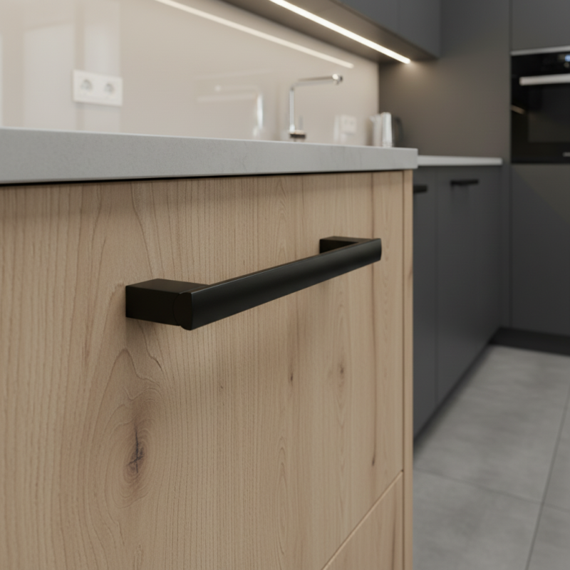 Der Griff PUERTO ist dank seiner klassischen Form und seiner vielseitigen Verwendbarkeit eines der beliebtesten Modelle der Kollektion. Er eignet sich sowohl für moderne als auch für traditionelle Innenräume - Küchen, Bäder, Wohnräume oder Büros.