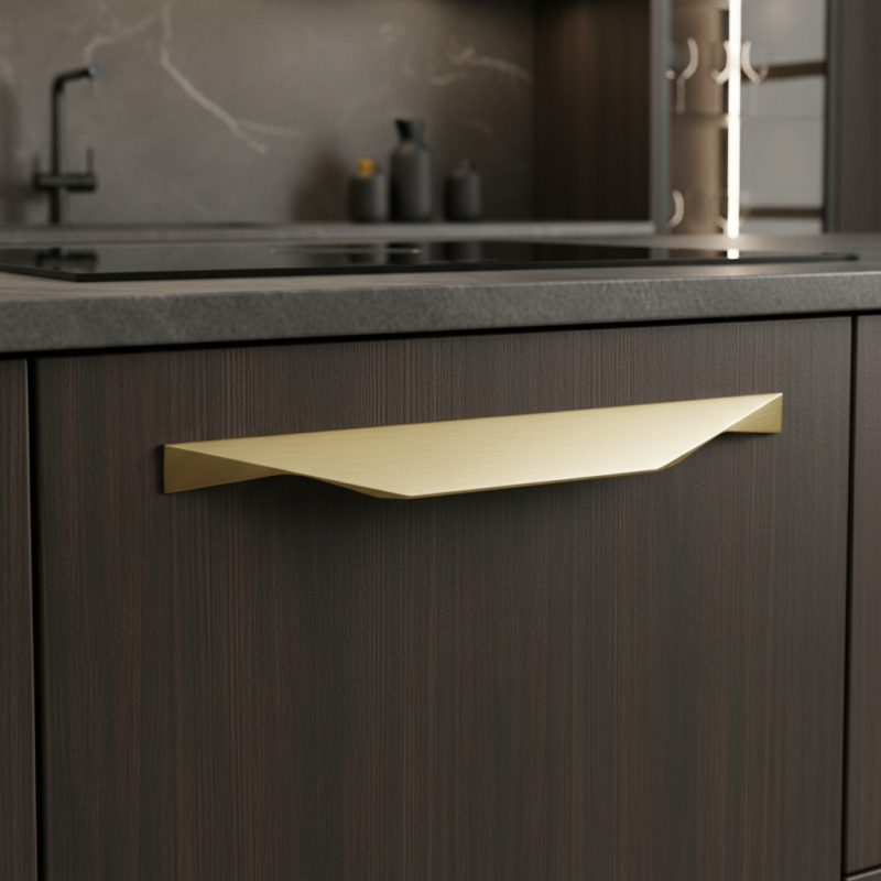 Der Griff VALENCIA in luxuriöser Ausführung gebürstetes Gold bringt einen warmen, hochwertigen Akzent und ein attraktives, modernes Design in den Innenraum. Seine dynamischen, scharf geschnittenen Linien wirken elegant und zugleich markant, wodurch er moderne Küchenzeilen, Wohnwände, Kleiderschränke und Designräume perfekt ergänzt.