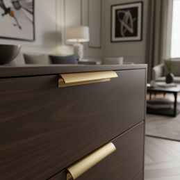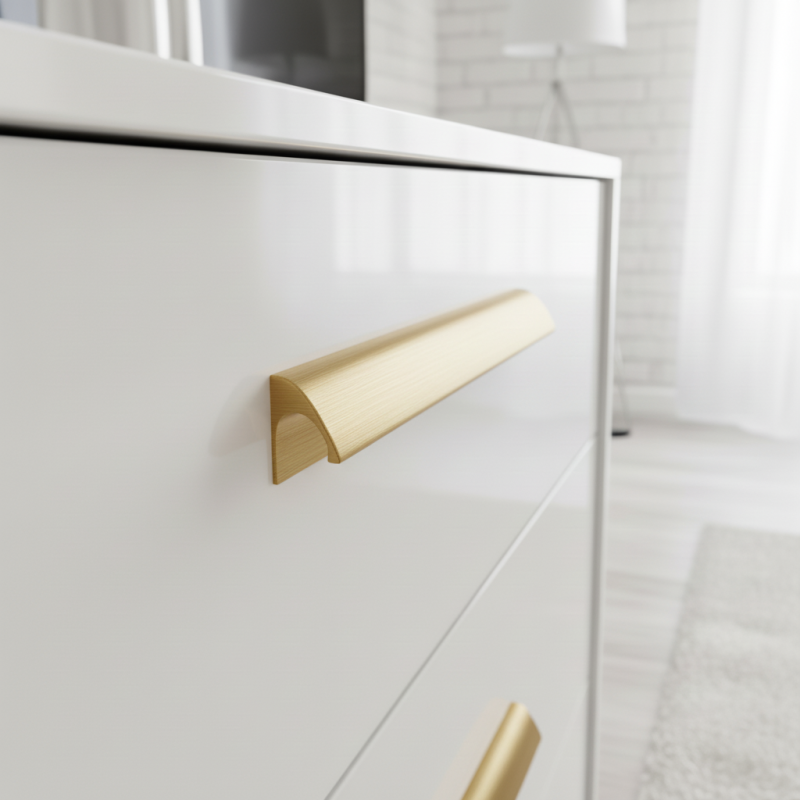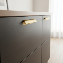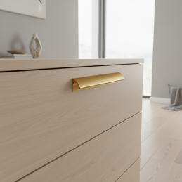 Der Griff NALU in gebürsteter Goldausführung ist die ideale Wahl für alle, die leichtes Aluminium, ein Premium-Design und ein elegantes Detail suchen, das den Möbeln einen individuellen und zeitlosen Charakter verleiht.