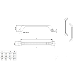 • Bohrabstand 192 mm – Gesamtlänge 211 mm, Breite 16,5 mm, Höhe 25,5 mm
