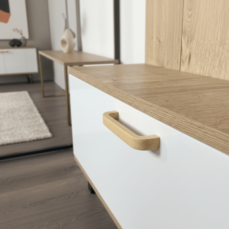 Der Holzgriff MIA in der Ausführung lackierte Kiefer ist ein schönes natürliches Accessoire, das den Möbeln einen warmen und gemütlichen Charakter verleiht. Er ist aus hochwertiger Kiefer gefertigt und die Oberfläche ist mit transparentem Lack behandelt, der das Holz schützt und seine typische, ausgeprägte Maserung hervorhebt.