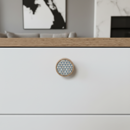 Der Holzgriff ARSIA in naturbelassener Buchenoptik mit geometrischem Dreiecksmotiv bringt einen verspielten, modernen und frischen Designakzent in jedes Interieur. Er ist aus massivem Buchenholz gefertigt, für höhere Widerstandsfähigkeit lackiert und mit einem feinen, dezent blau-weißen geometrischen Muster versehen, das sich hervorragend für Kinderzimmer, skandinavische oder minimalistische Räume eignet.