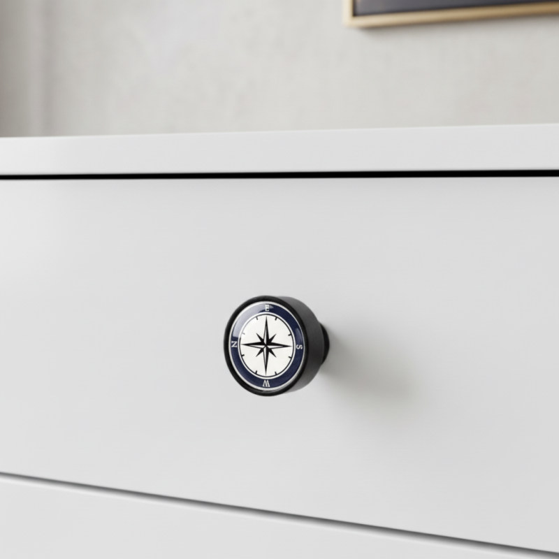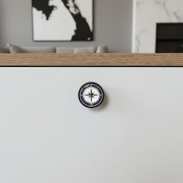 Der Holzgriff ARSIA mit Kompassmotiv ist ein originelles und stilvolles Accessoire, das Ihren Möbeln einen Hauch von Abenteuer und Reiselust verleiht. Hergestellt aus massivem Buchenholz, lackiert für hohe Widerstandsfähigkeit und ergänzt durch eine detailreiche Grafik der Windrose, wirkt er modern, elegant und sehr attraktiv.