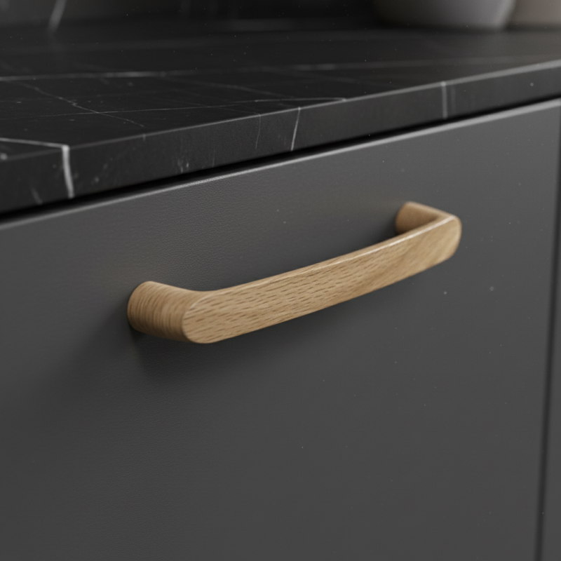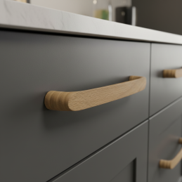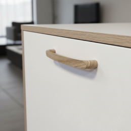 Der Holzgriff CALCATA in der Ausführung Eiche natur ist eine elegante Ergänzung für Möbel, die modernes Design mit der authentischen Schönheit von Massivholz verbindet. Seine Form ist sanft abgerundet und ergonomisch, was für einen angenehmen und komfortablen Griff im täglichen Gebrauch sorgt. Das Eichenholz mit seiner natürlichen Maserung verleiht dem Interieur Wärme, Harmonie und ein zeitloses Aussehen.