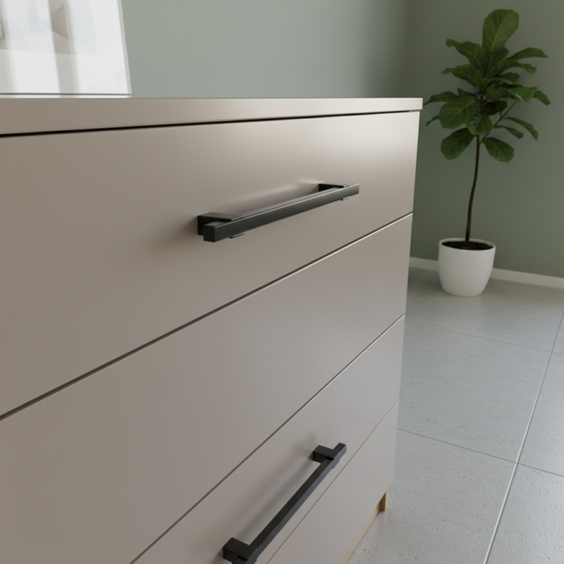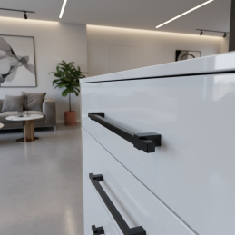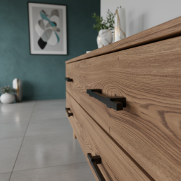 Moderne Holzgriff LEO in der Ausführung schwarze Eiche wirkt elegant, minimalistisch und ergänzt perfekt Interieurs im Stil von modern, industrial, loft oder Scandinavian dark. Der Griff ist vollständig aus Massivholz gefertigt, präzise bearbeitet und matt lackiert für eine lange Lebensdauer.