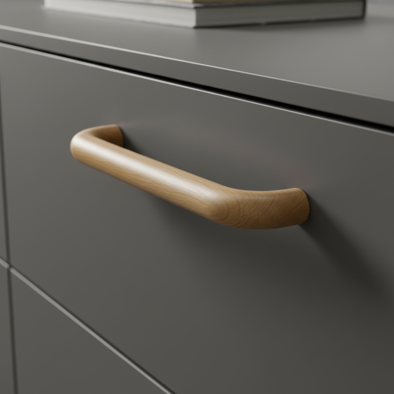 Der Griff ist ideal für Küchenschränke, Kommoden, Kleiderschränke oder Badmöbel und verleiht dem Interieur ein warmes, harmonisches und modernes Aussehen.