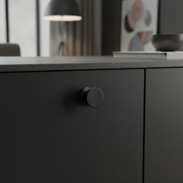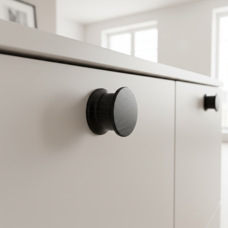 Holzknopf BALENCIA in der Ausführung schwarz lackiert ist ein modernes und elegantes Detail, das den Möbeln einen markanten und raffinierten Charakter verleiht. Hergestellt aus Massivholz, oberflächenbehandelt mit hochwertigem schwarzem Lack, der ihre Widerstandsfähigkeit erhöht und gleichzeitig die natürliche Holzmaserung dezent zur Geltung bringt.