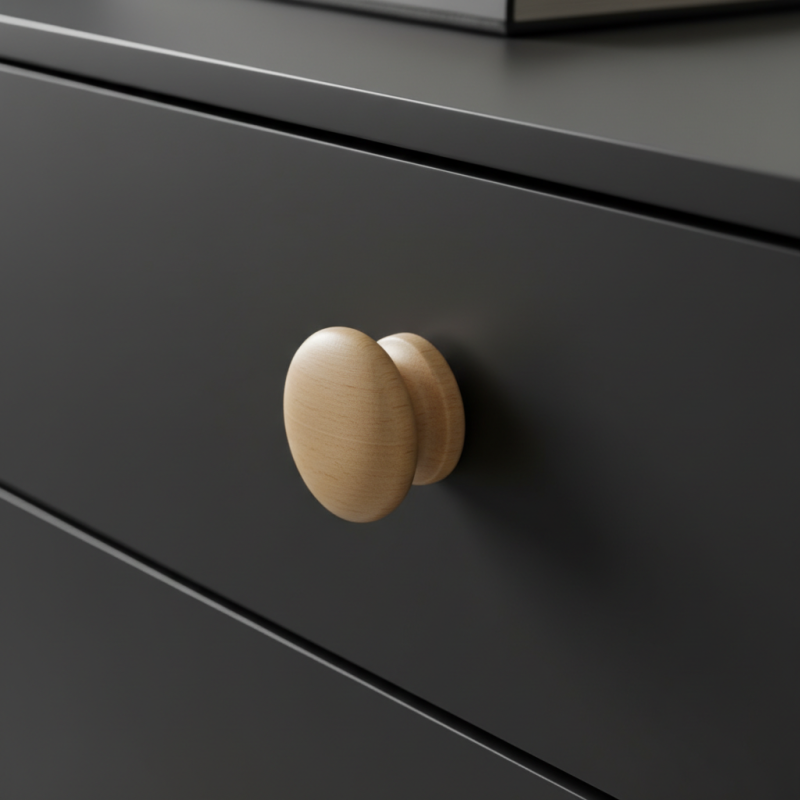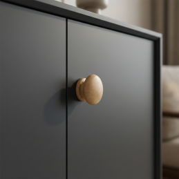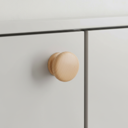 Griff - Knauf aus Naturholz, geeignet für Massivmöbel. Der Griff hat einen Durchmesser von 44 mm und ist mit einer transparenten Lackierung versehen.