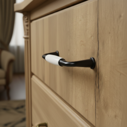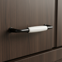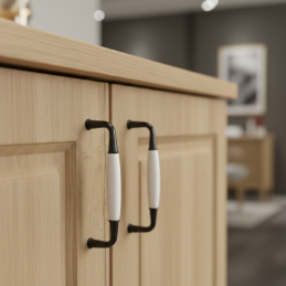 Der Griff BLANCA in der Kombination aus schwarzer Farbe und weißem Porzellan ist eine elegante Lösung für Innenräume, die modernen und rustikalen Stil verbinden. Die kontrastreiche Farbgebung wirkt zeitlos, dezent markant und eignet sich für Küchen, Wohnzimmer und Schlafzimmer. Passt perfekt zu dunklen und hellen Möbeln.