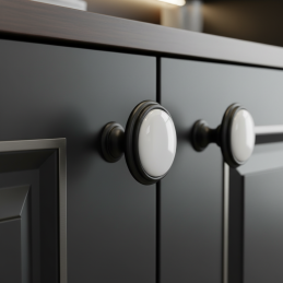 Der elegante Griff FRESNO in schwarzer Ausführung vereint einen hochwertigen Metallkörper mit Keramik-Dekor und schafft so ein zeitloses und vielseitiges Accessoire, das sowohl für moderne als auch klassisch gestaltete Innenräume geeignet ist. Seine harmonische Formgebung und feinen Linien verleihen den Möbeln Eleganz, während die widerstandsfähigen Materialien eine lange Lebensdauer und komfortable Nutzung garantieren.