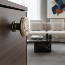 Dank der hochwertigen Porzellanverarbeitung ist der Griff stabil, angenehm zu berühren und zugleich ein markantes dekoratives Element des Möbels.