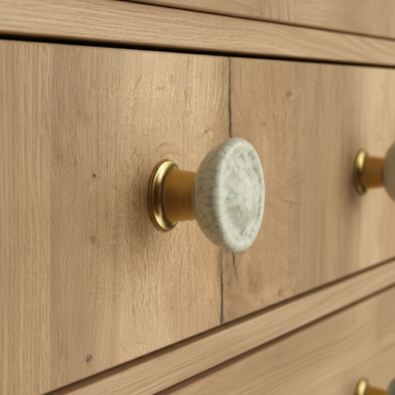 Dekorative Porzellanknopf WESTERN in luxuriöser Ausführung Altgold + weißes Porzellan ist eine großartige Wahl für klassische, Vintage- und rustikale Interieurs. Die Verbindung von elegantem Porzellan mit dem warmen Ton von Altgold wirkt markant und verleiht den Möbeln einen edlen Charakter.