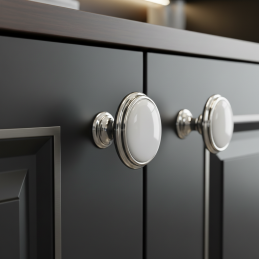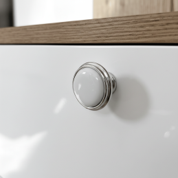 Der elegante Griff FRESNO in Chromausführung vereint einen hochwertigen Metallkörper mit Keramik-Dekor und schafft so ein zeitloses und vielseitiges Accessoire, das sowohl für moderne als auch klassisch gestaltete Innenräume geeignet ist. Die harmonische Formgebung und feinen Linien verleihen den Möbeln Noblesse, während die widerstandsfähigen Materialien eine lange Lebensdauer und komfortable Nutzung garantieren.