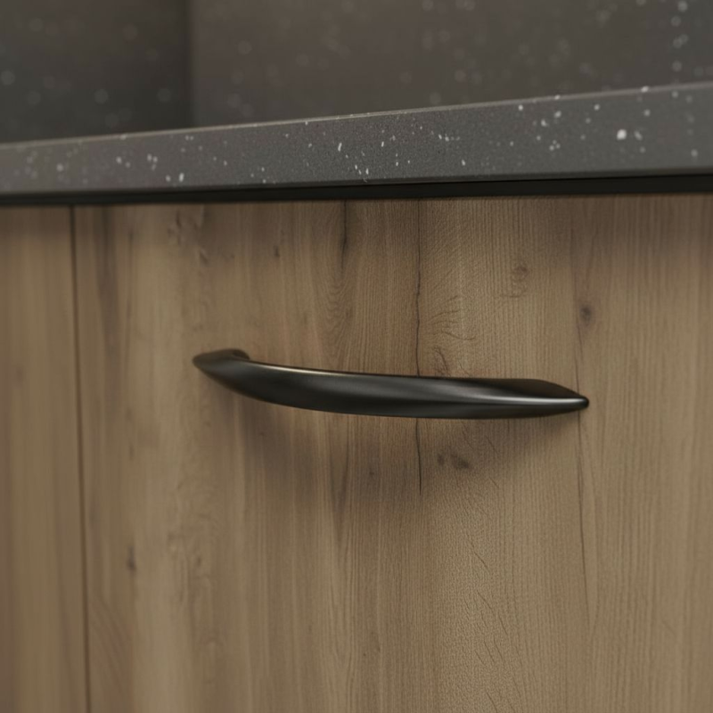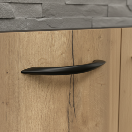 Der Griff KINGSTON in eleganter schwarzer, matter Ausführung bietet ein klares, modernes Design und eine zeitlose Bogenform. Er eignet sich für Küchen-, Bad- und Wohnmöbel und bietet dank des durchdacht geformten Bogens einen bequemen und ergonomischen Griff. Die matte schwarze Oberfläche unterstreicht seinen modernen Charakter und verleiht den Möbeln einen markanten, stilvollen Akzent.