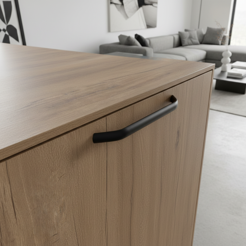 Der Griff DIVA ist ein modernes und elegantes Designelement, das Ihren Möbeln ein luxuriöses und zeitloses Aussehen verleiht. Dank seiner schlanken, sanft abgerundeten Form wirkt er dezent, aber gleichzeitig sehr stilvoll. Die Oberfläche in mattem Schwarz ist besonders beliebt in modernen Innenräumen – sie passt hervorragend zu Holz, weißen Möbeln und Betondekoren.