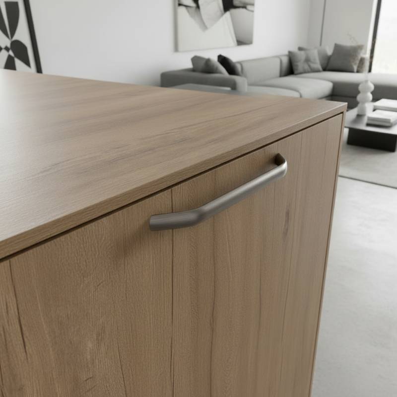 Griff DIVA in der Oberflächenbehandlung Edelstahl ist ein elegantes und zeitloses Accessoire, das sich für moderne, minimalistische sowie industrielle Innenräume eignet. Die sanft abgerundete Form und die hochwertige Metallverarbeitung verleihen den Möbeln ein Premium-Aussehen. Die Edelstahlfarbe ist universell, leicht kombinierbar und wirkt sauber und professionell – eine großartige Wahl für Küche, Bad und Wohnzimmer.