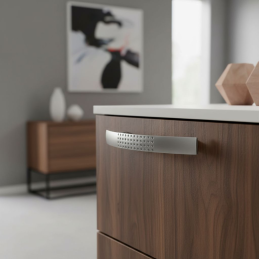Der Griff VELLEN bietet eine außergewöhnliche Kombination aus ästhetischem Detail und praktischer Form. Er passt in moderne Innenräume, unterstreicht das Möbeldesign und sorgt gleichzeitig für komfortable tägliche Nutzung.