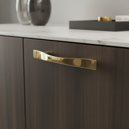 Der Griff WIX in glänzender Goldausführung ist ein markantes Designelement, das Möbeln einen modernen, eleganten und zugleich luxuriösen Charakter verleiht. Seine sanft geschwungene Linie wirkt leicht und harmonisch, während der goldene Hochglanz perfekt zu trendigen sowie glamourösen Interieurs passt.
