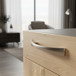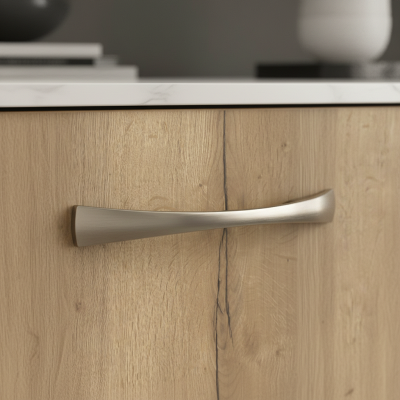 Gebürsteter Nickel – dezente, matte und sehr elegante Oberfläche, die hervorragend zu modernen Küchen, Kommoden und Badmöbeln passt.