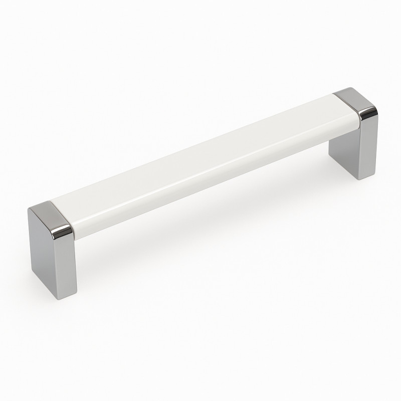 Dieser Designgriff verbindet die Eleganz von Stahl mit der Praktikabilität von Kunststoff zu einem modernen Accessoire, das jedes Möbelstück aufwertet. Dank seiner hochwertigen Materialien ist er langlebig, angenehm in der Haptik und für den täglichen Gebrauch geeignet.