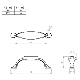 Lochabstand (A): 128 mm → Gesamtlänge (B): 157 mm