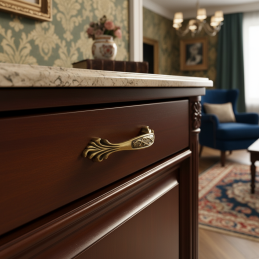Der Griff KAMILA ist die ideale Wahl für Möbel, bei denen ein elegantes, traditionelles und repräsentatives Erscheinungsbild mit Liebe zum Detail und zur Verarbeitungsqualität angestrebt wird.