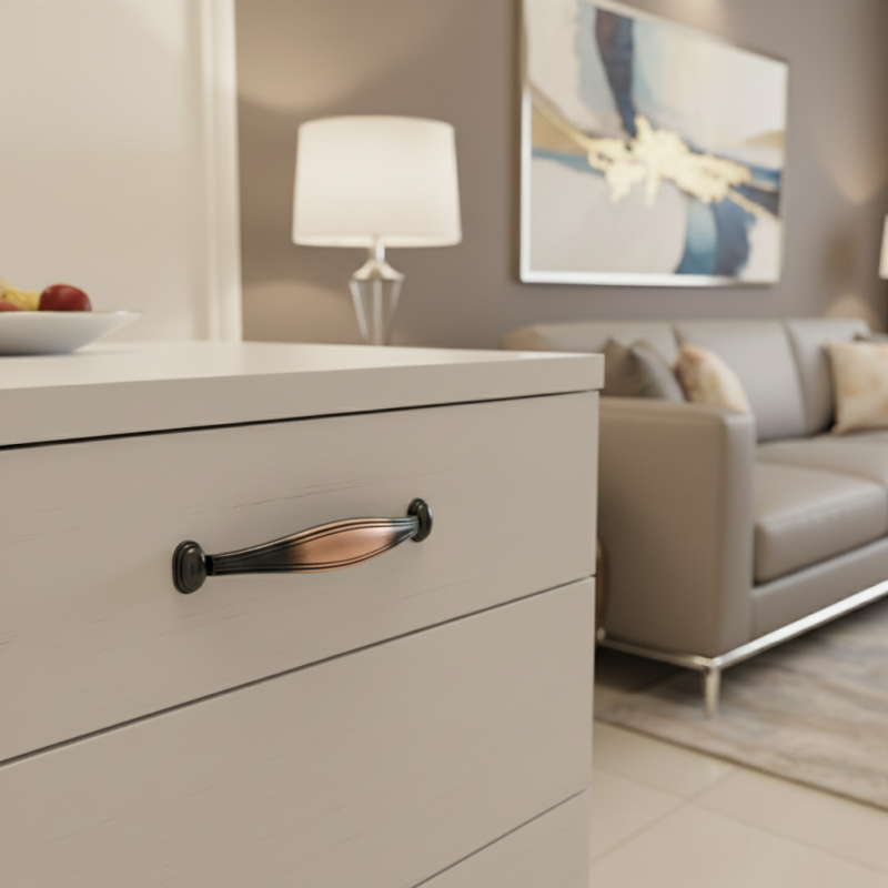 Eleganter Griff im rustikalen Stil geeignet für Schränke, Kommoden, Küchenzeilen oder andere Möbel, bei denen Sie ein klassisches oder Vintage-Design beibehalten möchten.