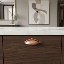 Der Griff MELANIE im Kupferton ist die ideale Wahl für alle, die ihren Möbeln einen originellen und eleganten Charakter mit stilvollem Vintage-Flair verleihen möchten.