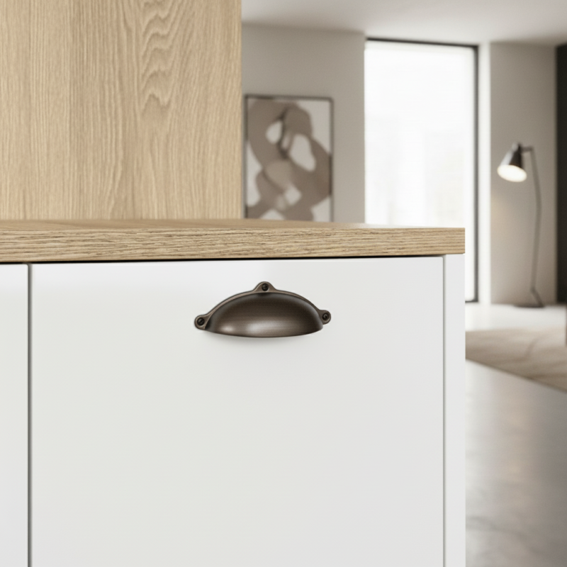 Die Titanfarbe wirkt zeitlos und zugleich dezent, was sie zur idealen Wahl für moderne Küchen, Kommoden, Schränke und Schubladen macht, wo ein elegantes und außergewöhnliches Detail gefragt ist.