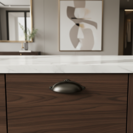 Der Griff MELANIE in titanfarbener Ausführung ist die ideale Wahl für alle, die ein modernes, elegantes und langlebiges Accessoire suchen, das dem Möbelstück ein einzigartiges und anspruchsvolles Aussehen verleiht.