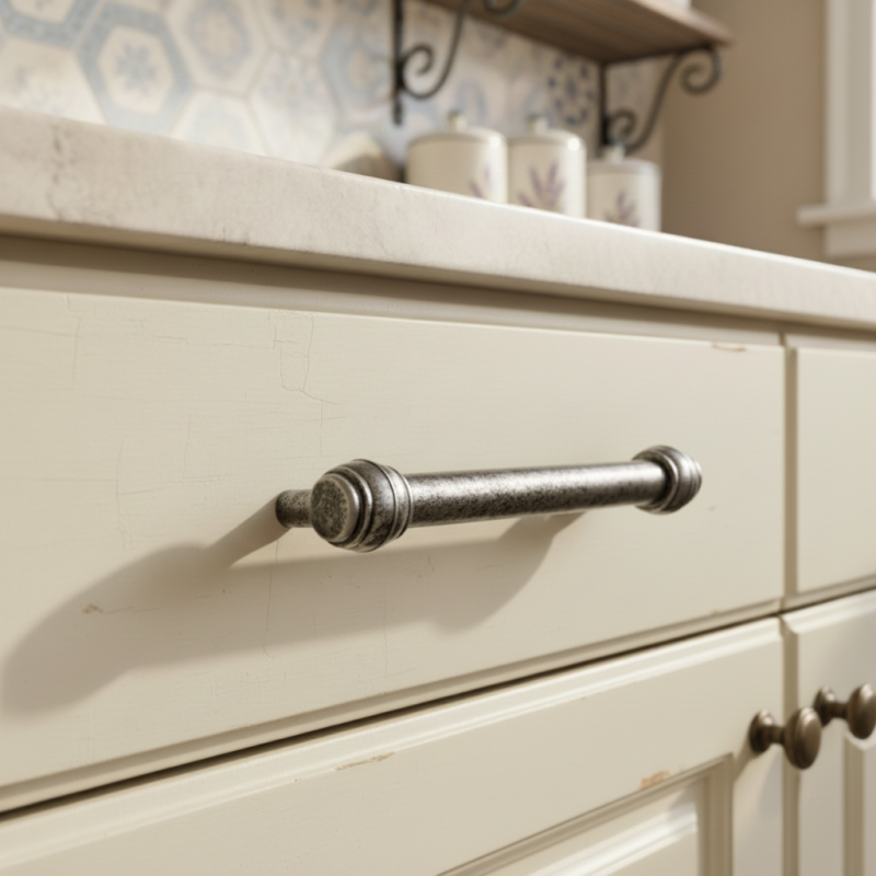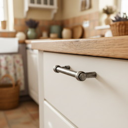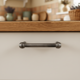 Griff RUSTICALE in der Oberflächenbehandlung Alt-Silber bringt einen Hauch von Eleganz und Noblesse mit dezentem Vintage-Charakter ins Interieur. Dank des massiven Metallkörpers und der abgerundeten Enden wirkt er markant, aber dennoch dezent – ideal für klassische, industrielle und ländliche Einrichtungsstile.