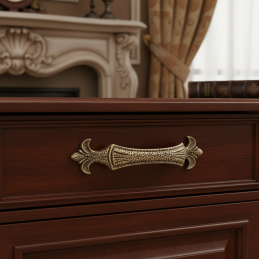 Griff VERDI / Altmessing ist die perfekte Wahl für diejenigen, die ihren Möbeln Charakter, Eleganz und den Charme vergangener Zeiten verleihen möchten – und das alles in einer soliden und praktischen Ausführung.