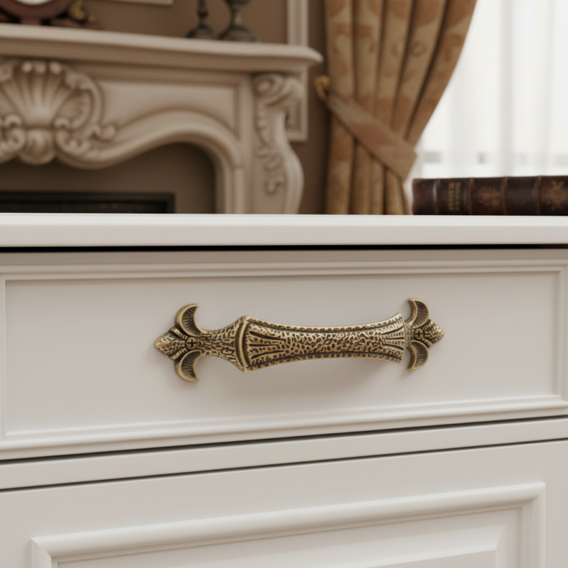 Er ist die ideale Wahl für Liebhaber von Vintage-, Retro-, rustikalen oder klassischen Interieurs, wo er die Atmosphäre unterstreicht und den dekorativen Charakter der Einrichtung hervorhebt. Perfekt geeignet für Schubladen, Schränke, Kommoden oder Kredenz.