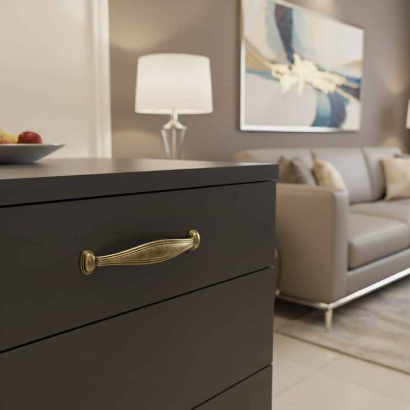 Eleganter Griff im rustikalen Stil, geeignet für Schränke, Kommoden, Küchenzeilen oder andere Möbel, bei denen Sie ein klassisches oder Vintage-Design beibehalten möchten.