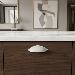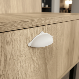 Der Griff MELANIE in elegantem Weiß ist die ideale Lösung für Schränke, Kommoden oder Küchenmöbel, bei denen Sie ein sauberes, zeitloses und harmonisches Erscheinungsbild erzielen möchten. Ihre Form als „Muschelgriff“ sorgt für praktisches Greifen und verleiht den Möbeln gleichzeitig einen dezenten Retro-Touch, der perfekt zu modernen, rustikalen und skandinavischen Interieurs passt.