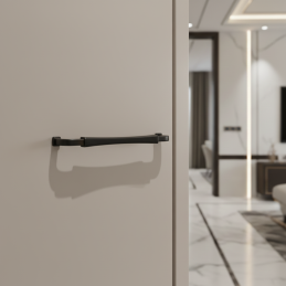 Die ergonomische Form sorgt für einen bequemen Griff, was ihn zur idealen Wahl für Küchen, Flure, Bäder und Wohnwände macht. Die schwarze, matte Oberfläche ist widerstandsfähig, pflegeleicht und passt perfekt in modernes Wohnen.