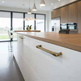 Der Metallgriff TAMPA in Altmessing-Ausführung besticht durch eine feine Patina und ein traditionelles Aussehen, das Ihren Möbeln einen eleganten, rustikalen Charakter verleiht. Der warme Farbton des Altmessing passt hervorragend zu klassischen, ländlichen und Vintage-Innenräumen.